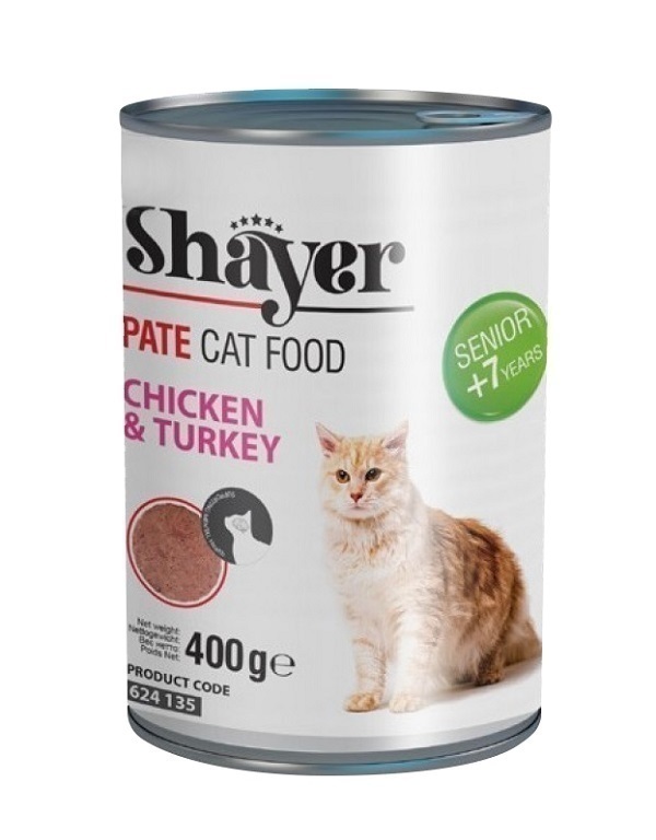 کنسرو غذای گربه مسن شایر طعم مرغ و بوقلمون | Senior Chicken & Turkey وزن 400 گرم