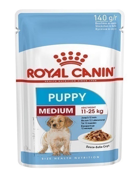 غذای پوچ توله سگ نژاد متوسط رویال کنین مدل مدیوم پاپی Medium Puppy وزن 140 گرم