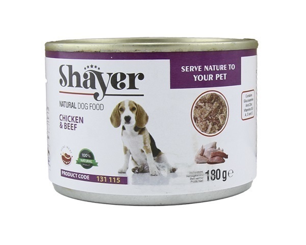 کنسرو غذای سگ شایر طعم مرغ و گوشت | Chicken & Beef وزن 180 گرم