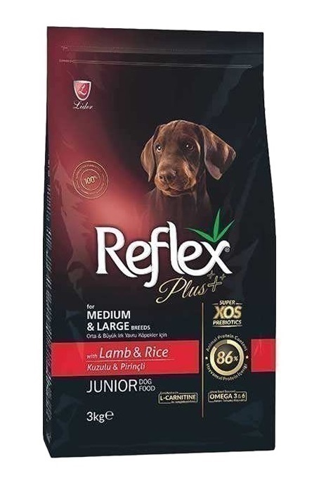 غذای سگ نابالغ رفلکس پلاس با طعم گوشت بره و برنج وزن ۳ کیلوگرم