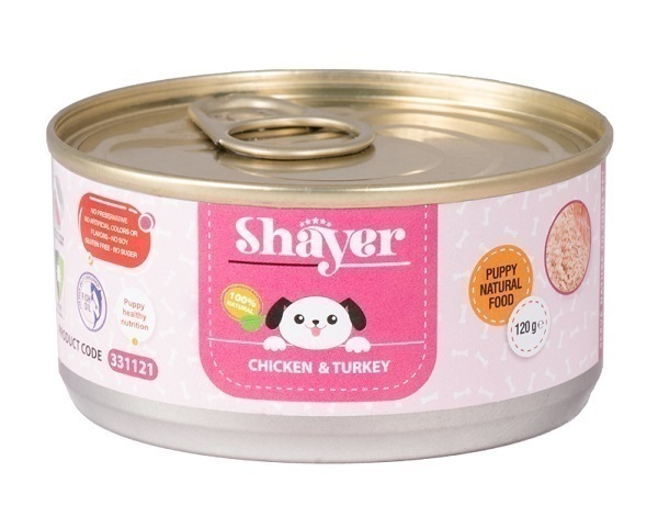 کنسرو غذای توله سگ شایر طعم مرغ و بوقلمون | Chicken & Turkey وزن 120 گرم